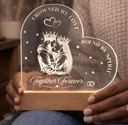 Crowned by Love. Bound by Spirit. | Regal Union Engraved LED Acrylic Heart Plaque